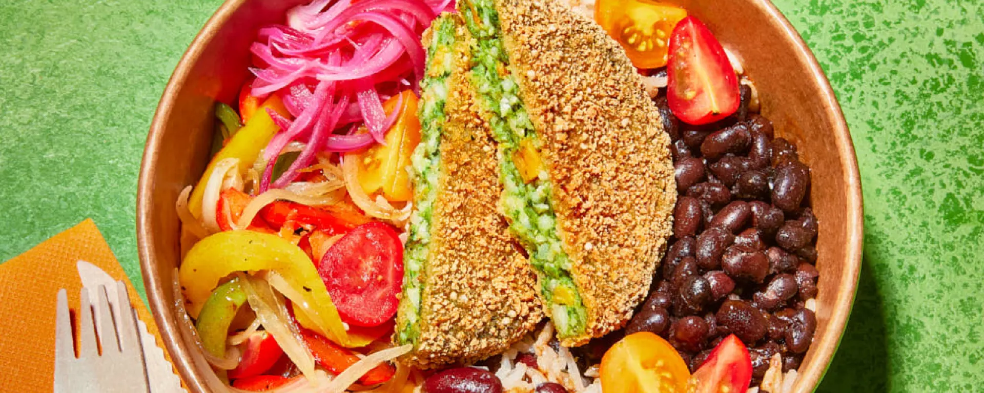- Reheat rice and peas, black beans and sauté peppers and onions separately until piping hot