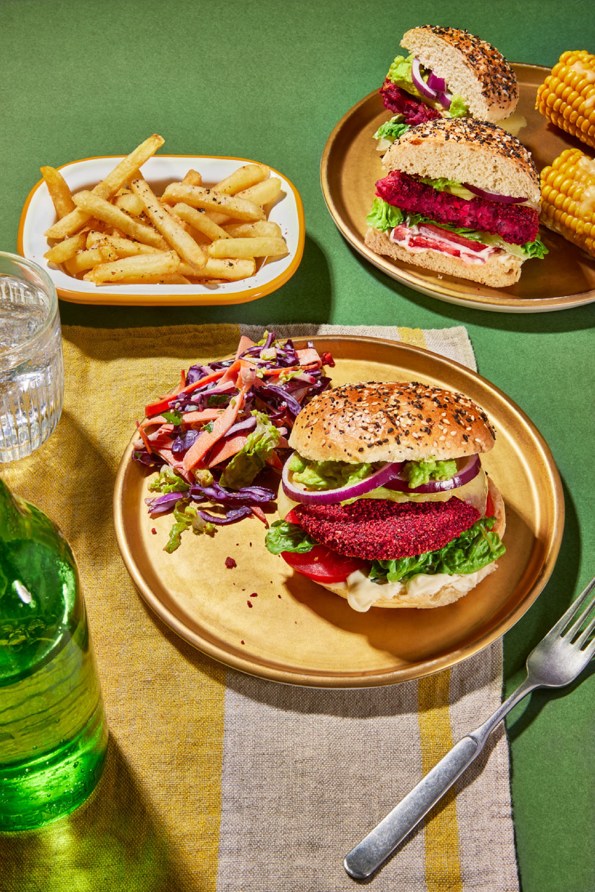 Fry Strong Roots The Bean & Beet Burger at 175 degrees for 5 minutes drain well, top with cheese and bake in the oven at 180 degrees for 1 minute